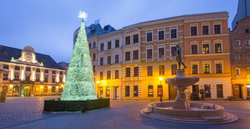 Рождественская атмосфера во Вроцлаве в этом году уже создана – в городе зажглись уличные украшения и рождественские елочки, самая большая из которых находится на Рыночной площади. Город в рождественских огнях смотрится очень красиво. Фотографии празднично украшенного Вроцлава разместил туристический портал города и вроцлавцы и гости года в Instagram.